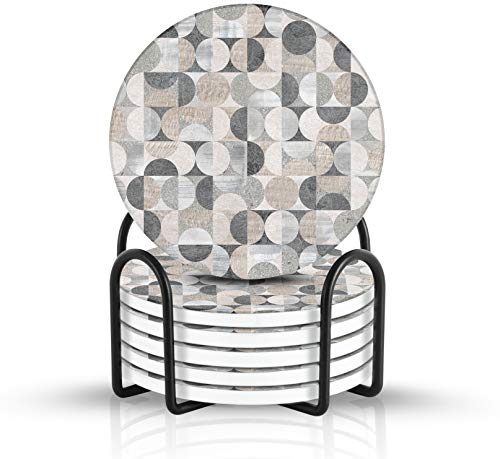 • ✅ Non Slip – Our special material ceramic makes the coasters great for drinking beverage glasses, cups and mugs. Giftable idea for family, friends, women and men. Our wide selection includes black, grey, white, gold, brown, funny, mid century pattern, geometric, geode, rustic, minimalist and industrial style. Protects surfaces and absorbs faster than sandstone, soapstone, tile, cork, silicone, quartz, porcelain or marble.